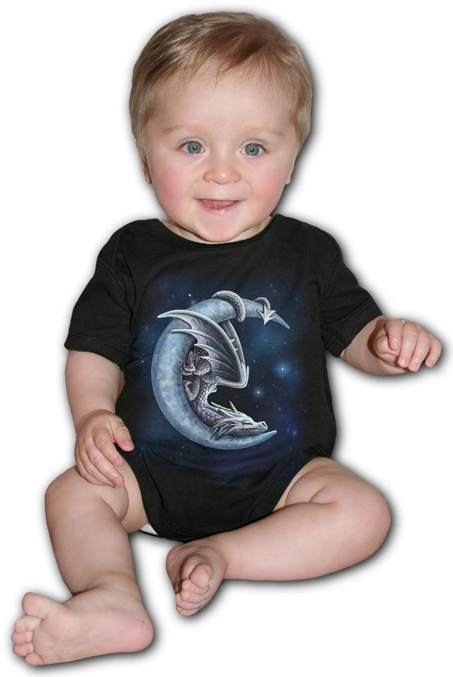Joli dragon endormi sur un croissant de lune, il semble rĂȘver Ă de folles aventures au milieu des Ă©toiles…
