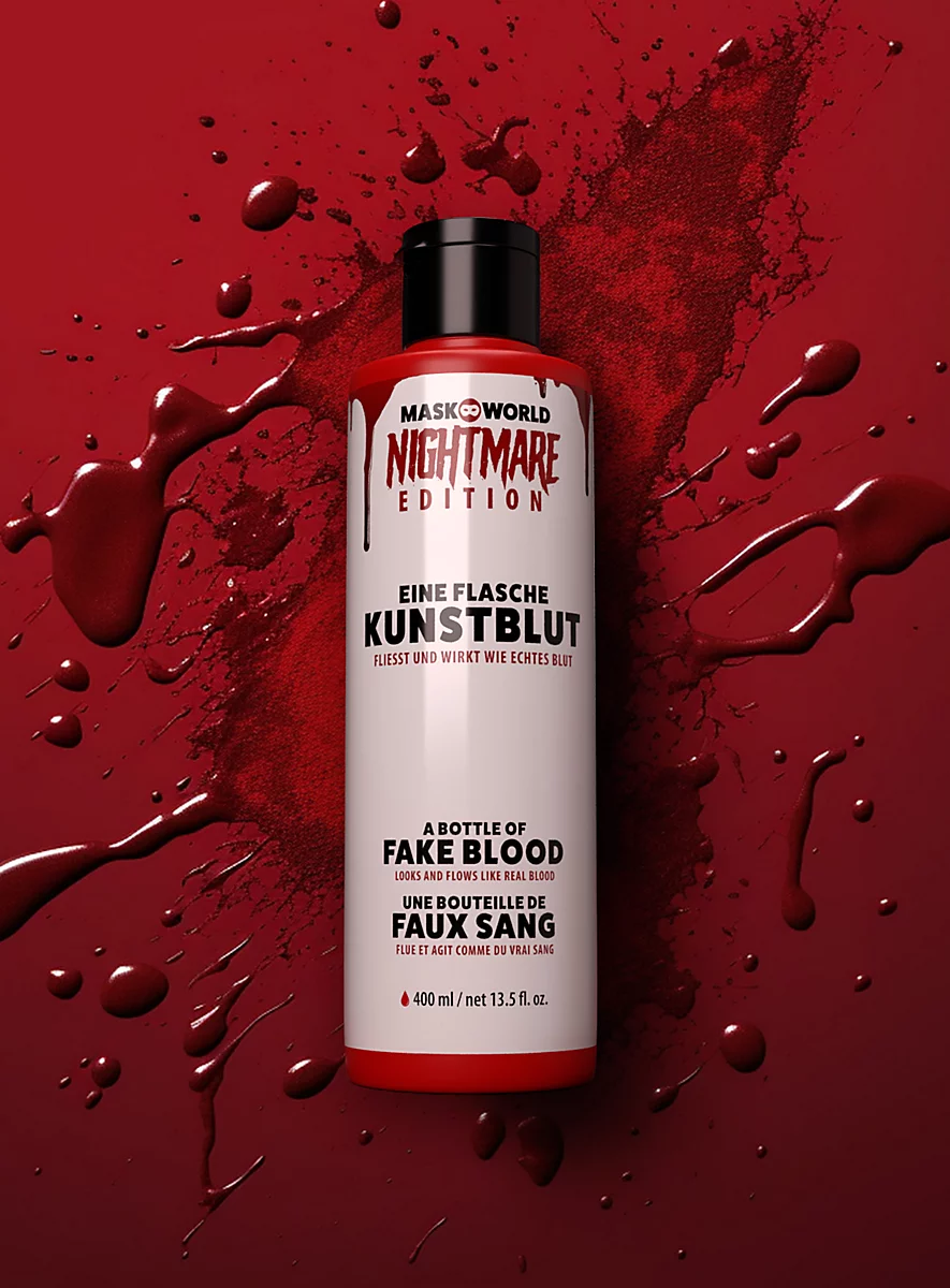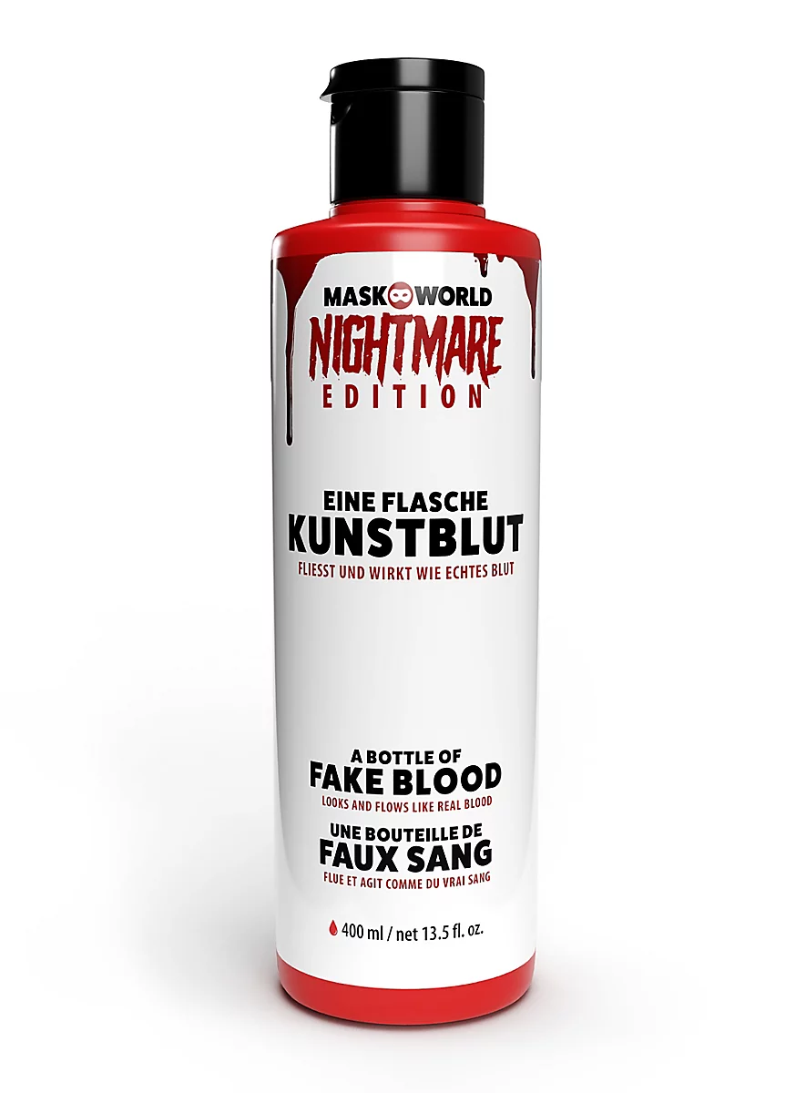 Est-ce que cela pourrait l’ĂȘtre plus ? Les entailles profondes et les membres amputĂ©s nĂ©cessitent Ă©videmment une quantitĂ© rĂ©aliste de sang qui coule. Avec notre grande bouteille de sang artificiel rĂ©aliste, la distribution gĂ©nĂ©reuse et sur une large surface de la sĂšve de la vie ne reprĂ©sente aucun problĂšme. La bouteille de sang est Ă©galement particuliĂšrement utile lorsque l’on souhaite transformer une partie des dĂ©corations en accessoires ensanglantĂ©s. Ă une Ă©poque rĂ©volue oĂč les vampires portaient plainte contre l’anĂ©mie !