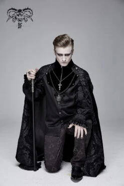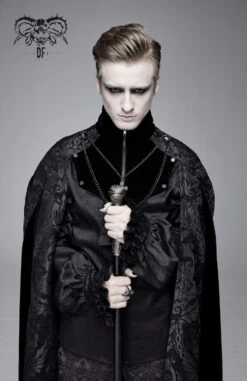 Bijoux amovibles montés sur une double chaîne avec une croix gothique et un cercle antique, vous pouvez les passer par les 2 gros boutons de décoration sur les épaules pour un super look comme sur nos photos