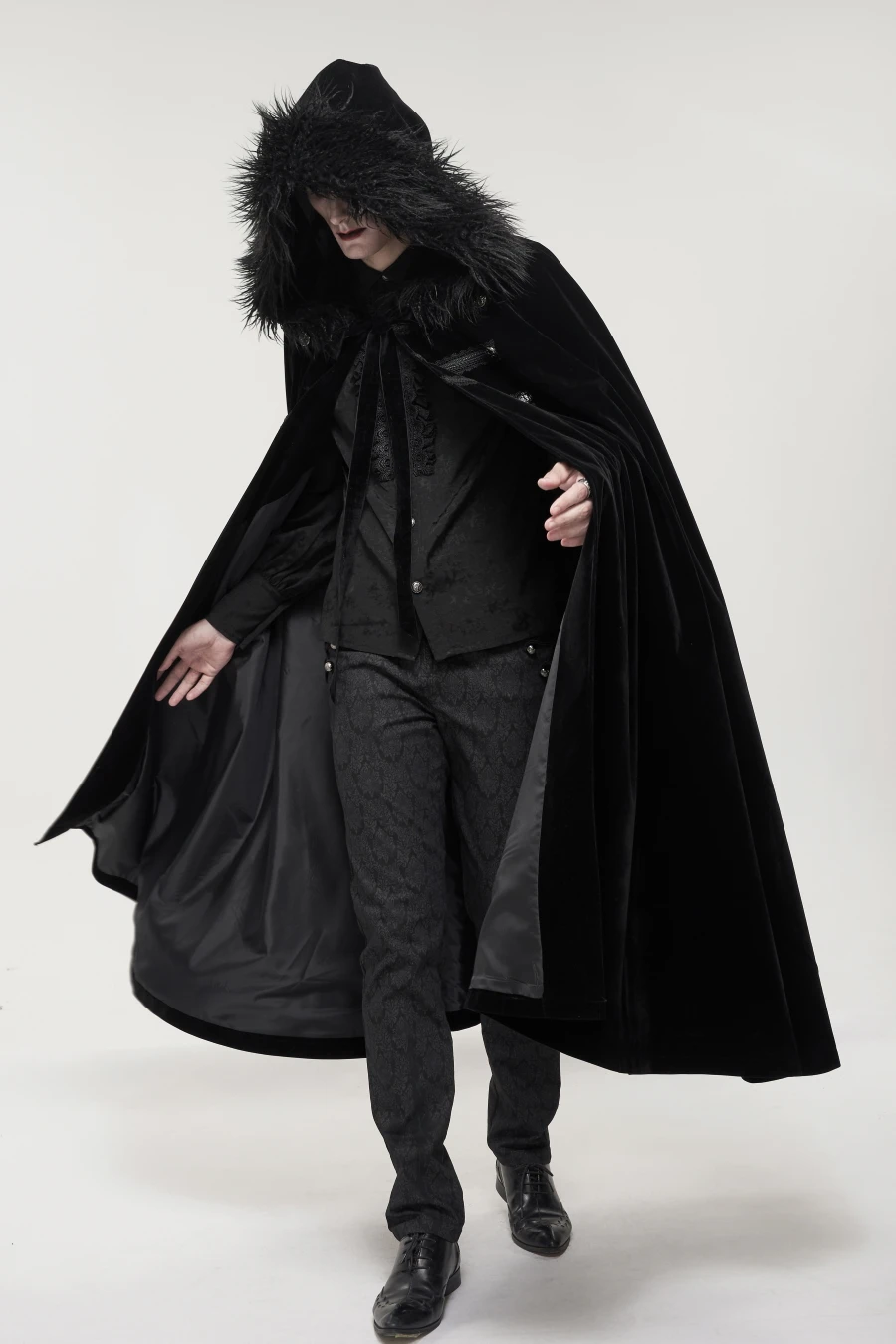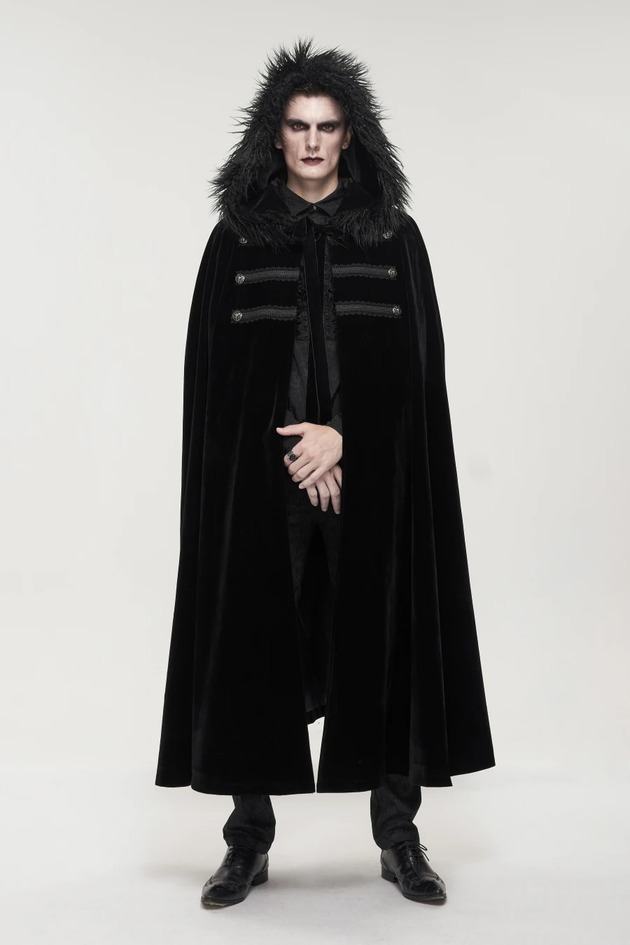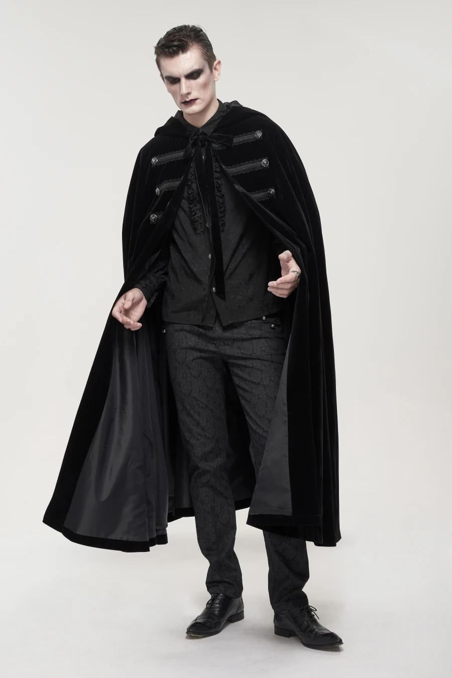 Impressionnante cape gothique homme en velours noir corbeau