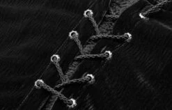 Laçage à l’avant avec 2 skulls métalliques et également 2 pompons