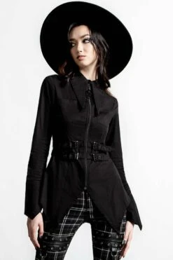 Superbe chemise noire taillée dans un tissu souple et élastique de grande qualité par Killstar