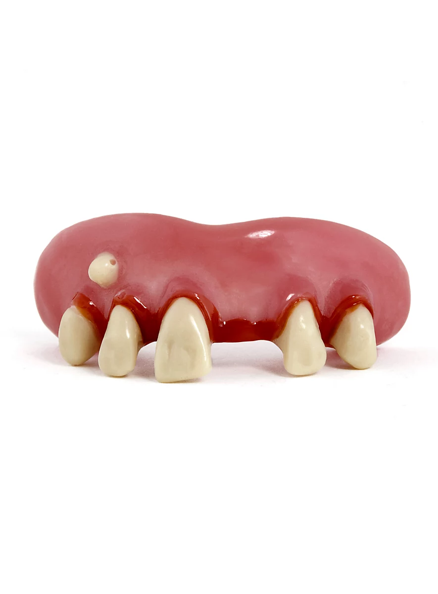 A travers ces dents espacées on devrait, à vrai dire, être en plein courant d’air ! Nous avons la solution pour toutes les personnes qui veulent surprendre leur entourage avec une dentition effrayante et laide. Les dents Délivrance avec les gencives enflammées rendent instantanément possible une telle métamorphose. Le dentier s’adapte individuellement aux dents de celui qui le porte, à l’aide des deux composants de moulage inclus. Toujours faire contre mauvaise fortune bon cœur !