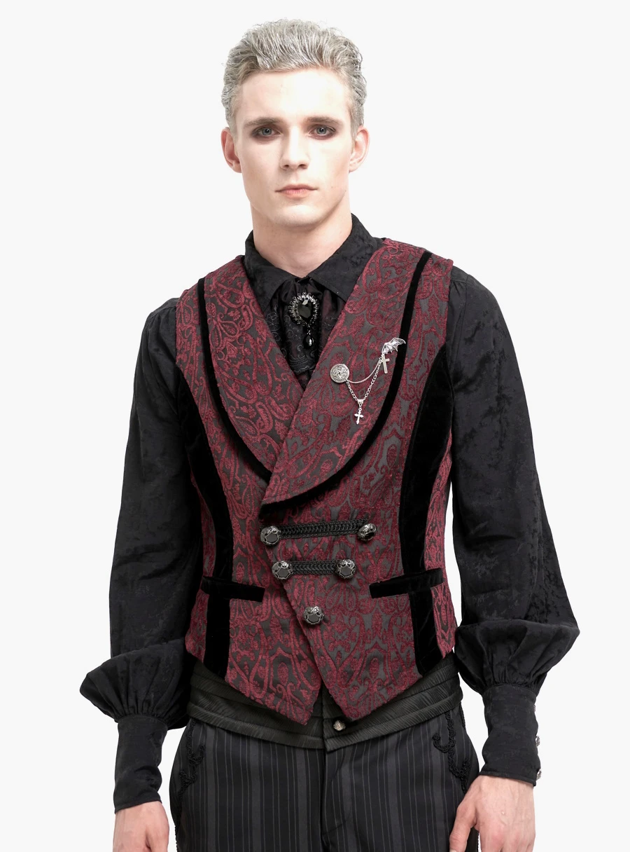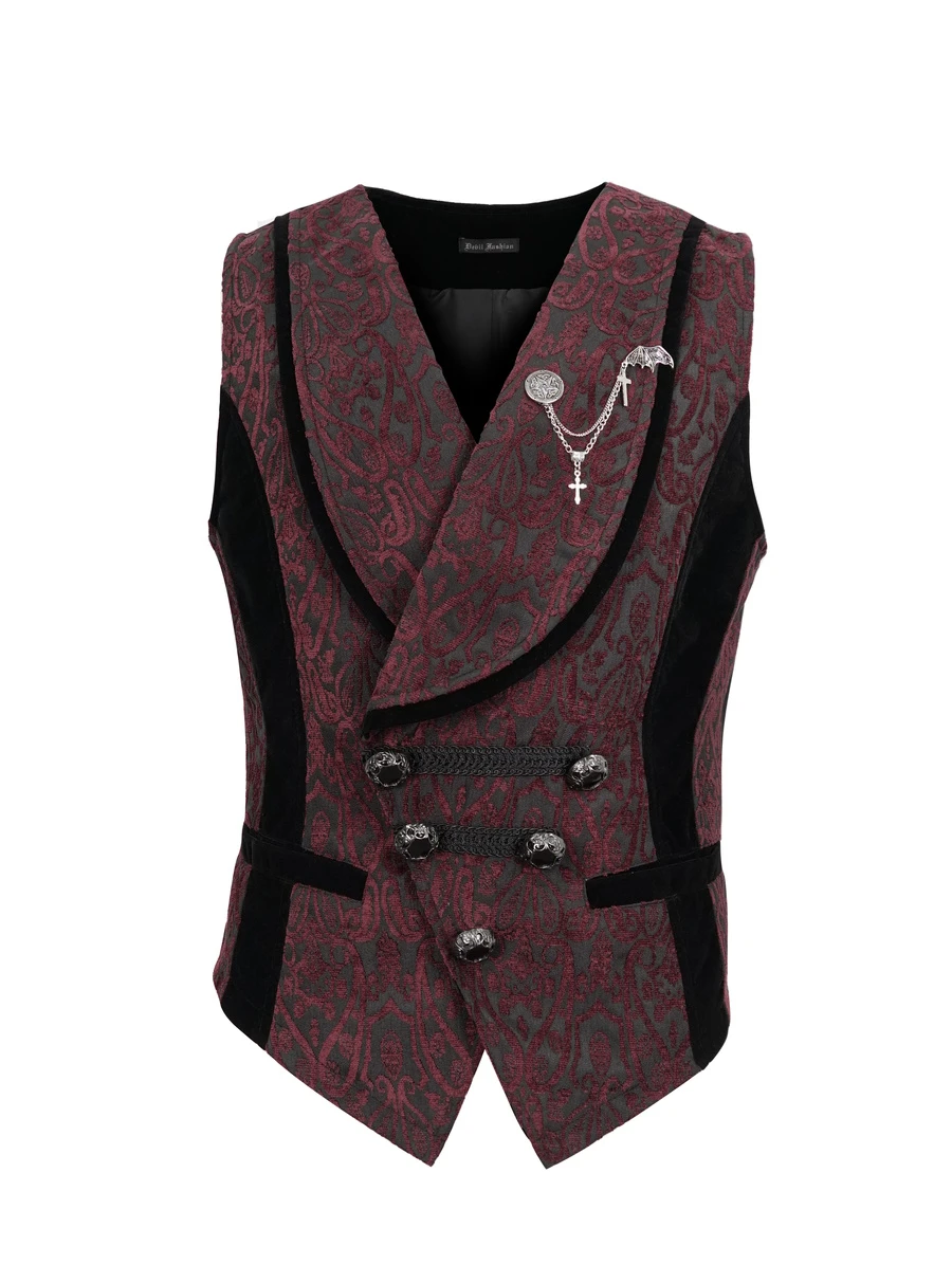 Ce gilet sans manches signé Devil Fashion est fabriqué dans un somptueux tissu jacquard rouge