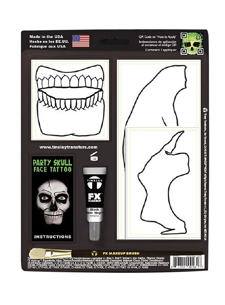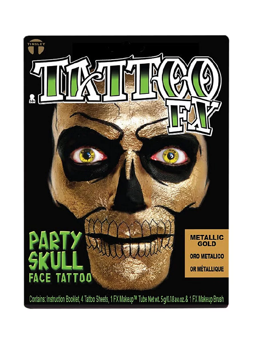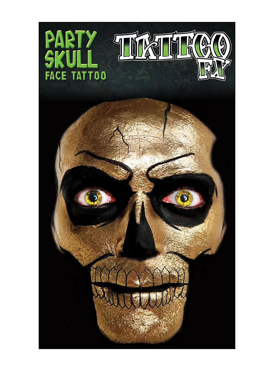 - Un set de tatouage adhésif visage crâne doré Glow in the Dark