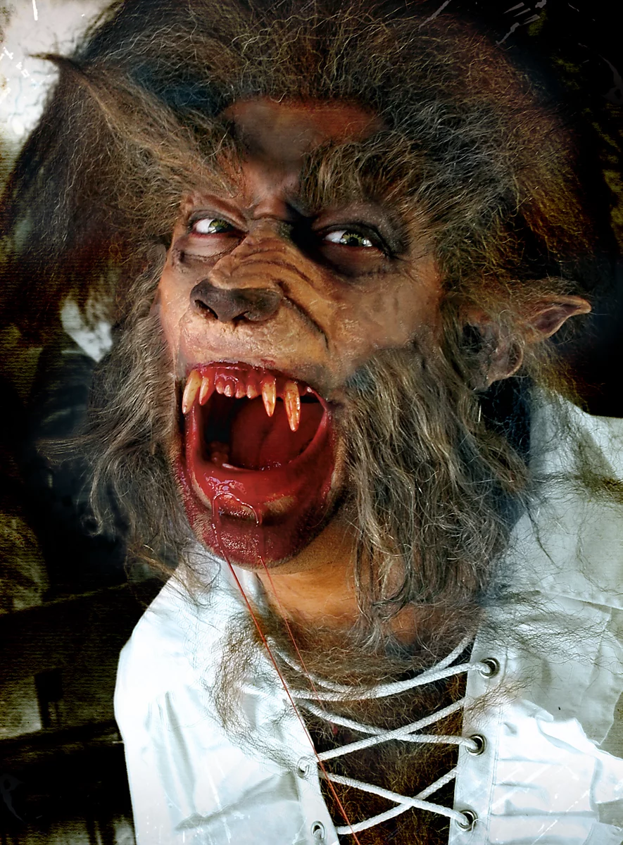 - une gueule de loup garou en latex haut de gamme
