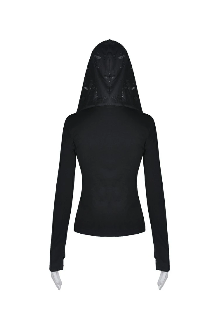 Ce haut manches longues signĂ© Dark In Love possĂšde une impressionnante capuche surdimensionnĂ©e retombant sur les Ă©paulesÂ