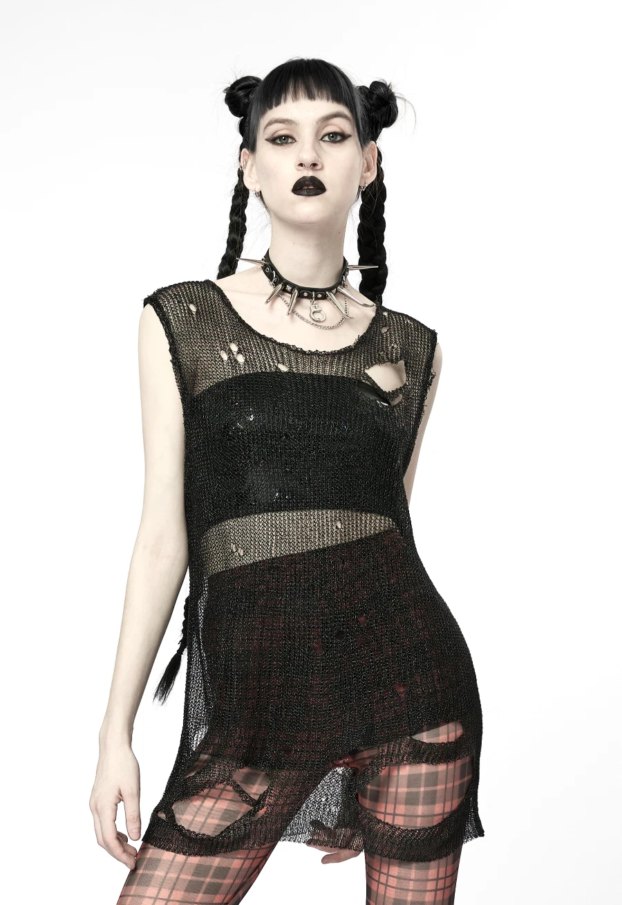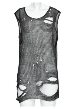 Tissu imitation mĂ©tal ! En effet ce haut post-apocalypse noir Punk Rave est fabriquĂ© dans un tissu trĂšs original imitation fil en mĂ©tal, l’aspect est bluffant !