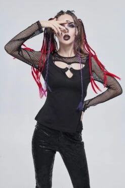 Ce haut gothique en coton léger possède des manches en tissu résille grosses mailles (tissu filet)