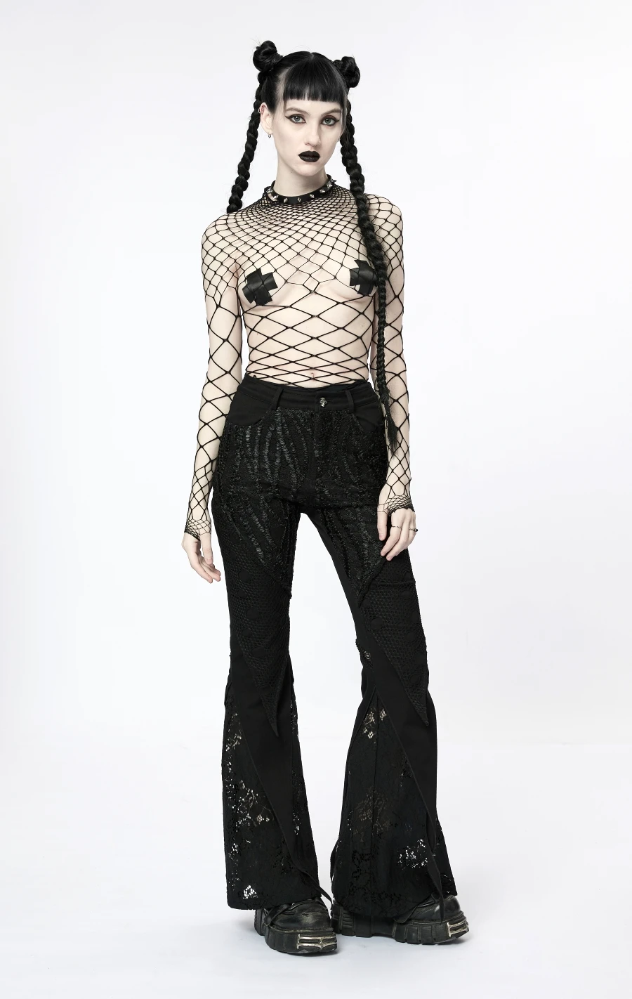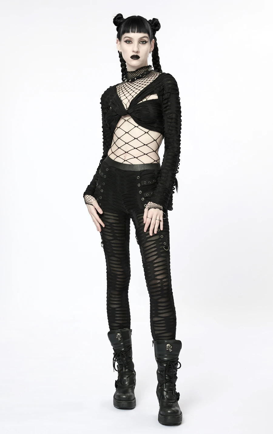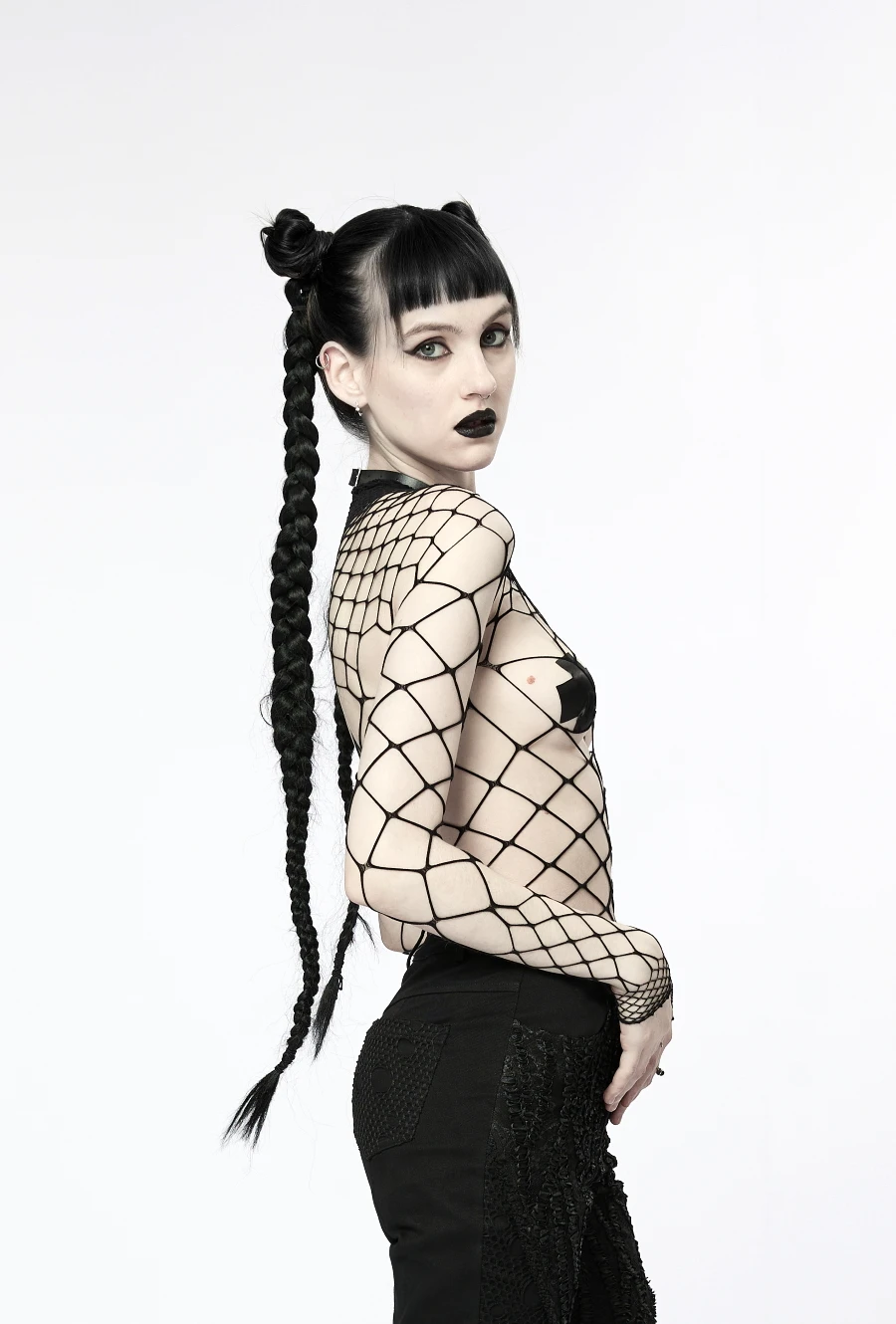 Ce haut manches longues signé Punk Rave est fabriqué en tissu mesh (résille) à mailles trÚs extensibles