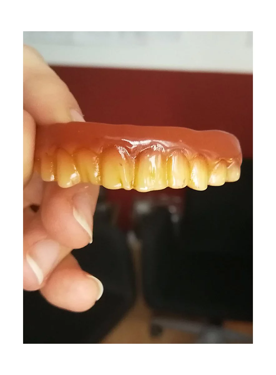 Dents : acrylique dentale ; pâte dentaire : silicone