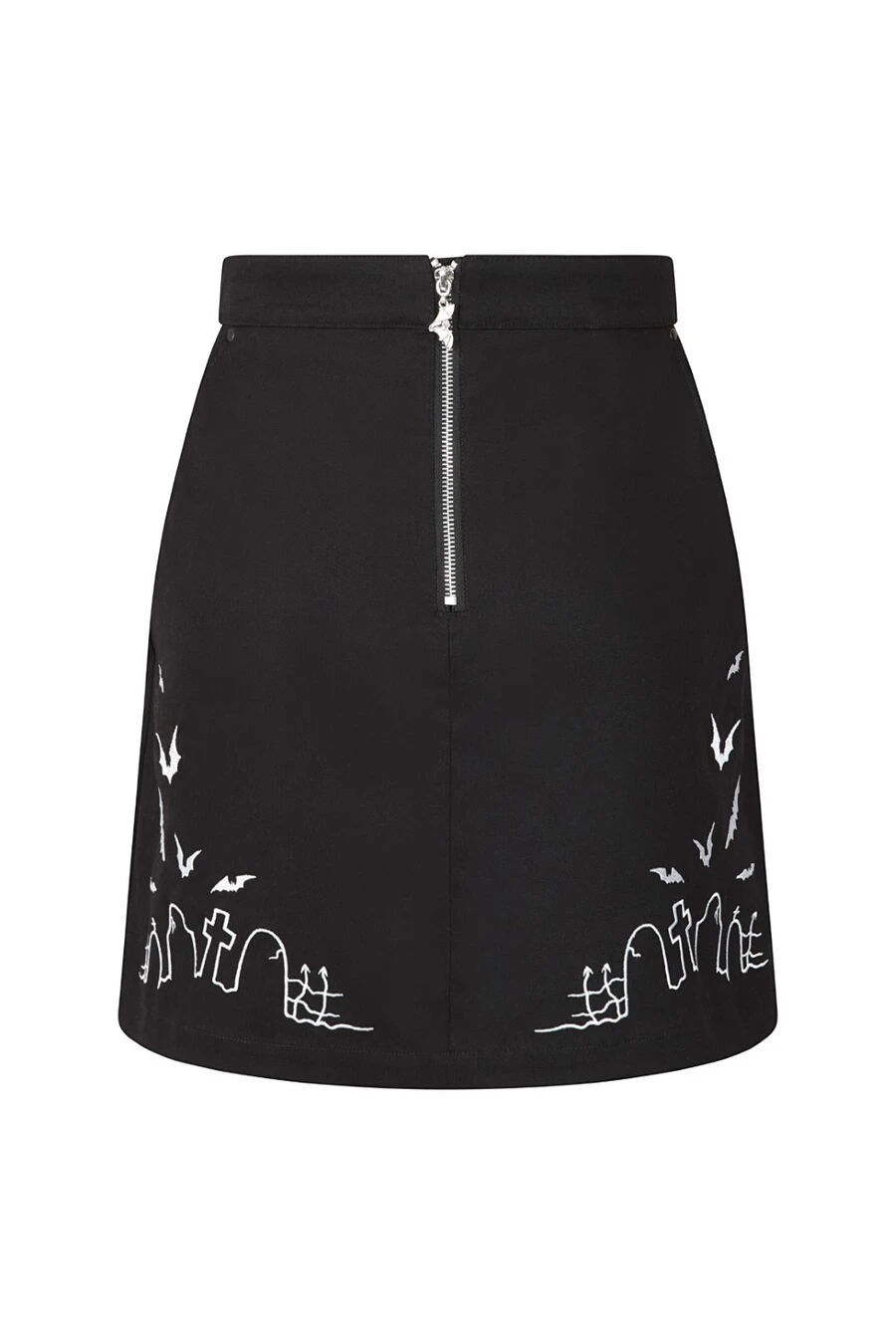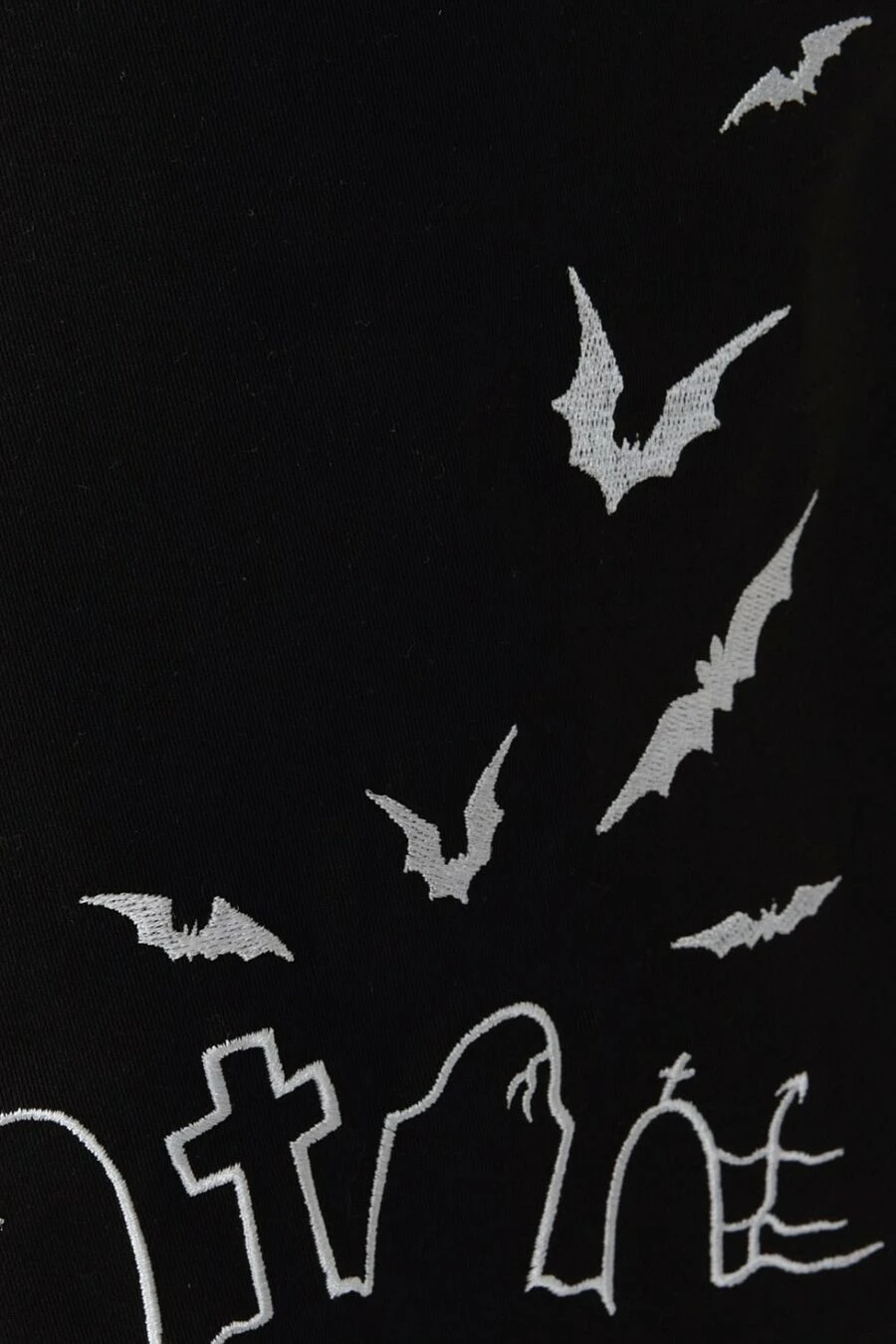 Motifs brodés sur le bas avec des tombes et des chauves-souris, le doute n’est plus permis vous êtes gothique !