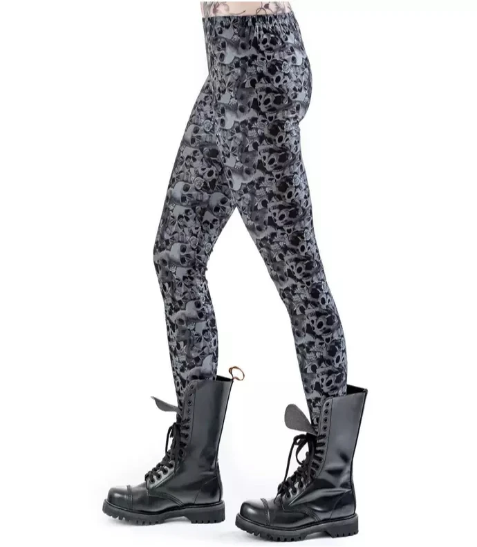 Terrible leggings gothique gris orné de crùnes sur toute la surface