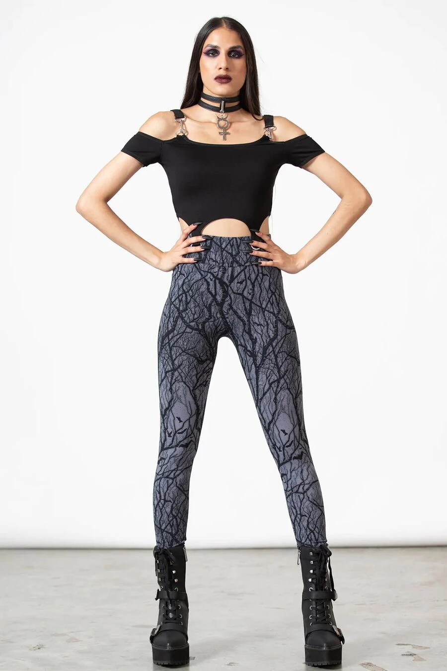 TrÚs beau leggings gris avec imprimé dark forest de touite beauté