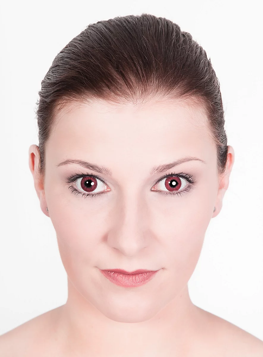 Lentilles de contact rouges diaboliques sans dioptrie. Obtenez facilement un effet impressionnant pour Halloween ou Carnaval !