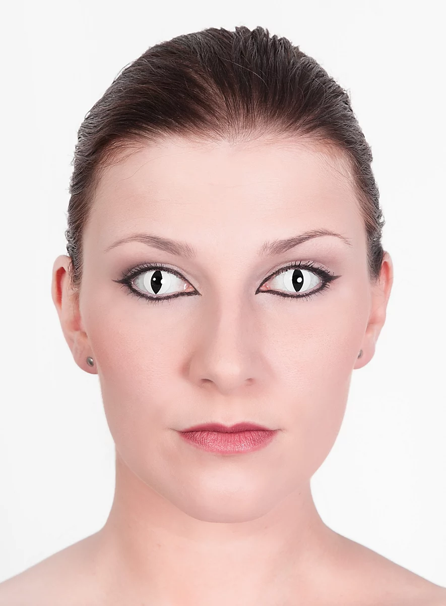 Nos lentilles de contact de félin blanches souples sans correction ne convainquent pas seulement grâce à leur esthétique fantastique et leur simplicité d’utilisation, mais aussi grâce à leur conception de haute qualité qui respecte les normes de qualité internationnales les plus strictes. Les motifs de nos lentilles de contact sont integrés via un procédé multi-couches. On évite ainsi le décollement des pigments même en cas d’utilisation prolongée. Ces lentilles de contact de haute qualité préservent la santé de vos yeux. La couleur de l’iris est intégralement recouverte par le motif de la lentille. La vue n’est cependant en rien modifiée en raison de l’absence de dioptrie et du fait que la pupille n’est pas obstruée.