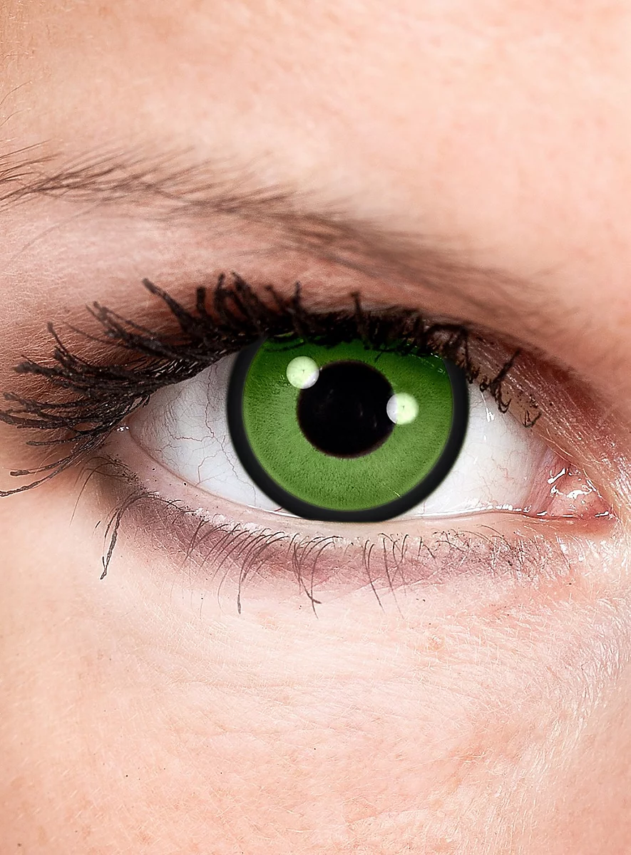 - une paire de lentilles de contact souples Gobelin vert sans correcteur de vue, BC : 8,6 DIA : 14.5″