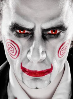 Lentilles de contact rouges diaboliques sans dioptrie. Obtenez facilement un effet impressionnant pour Halloween ou Carnaval !