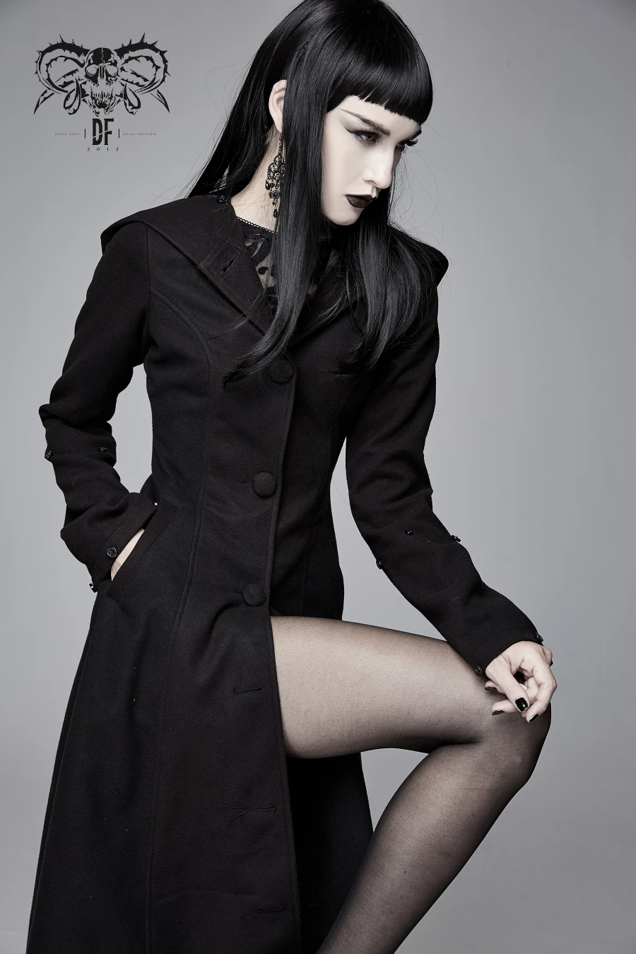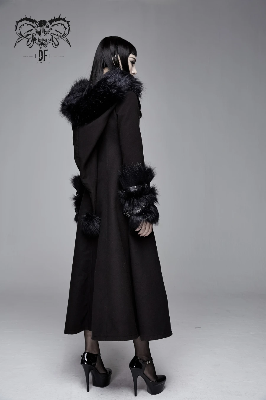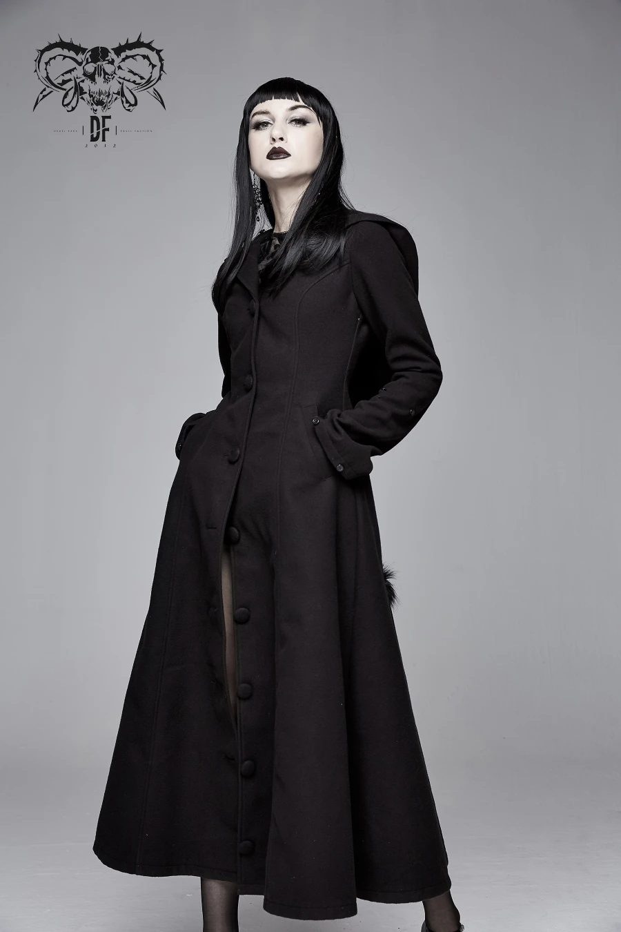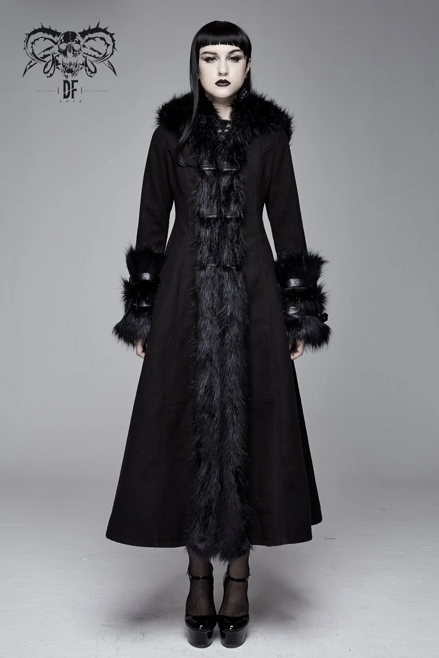 Long manteau gothique en laine synthétique ultra douce et de grande qualité signé Devil Fashion