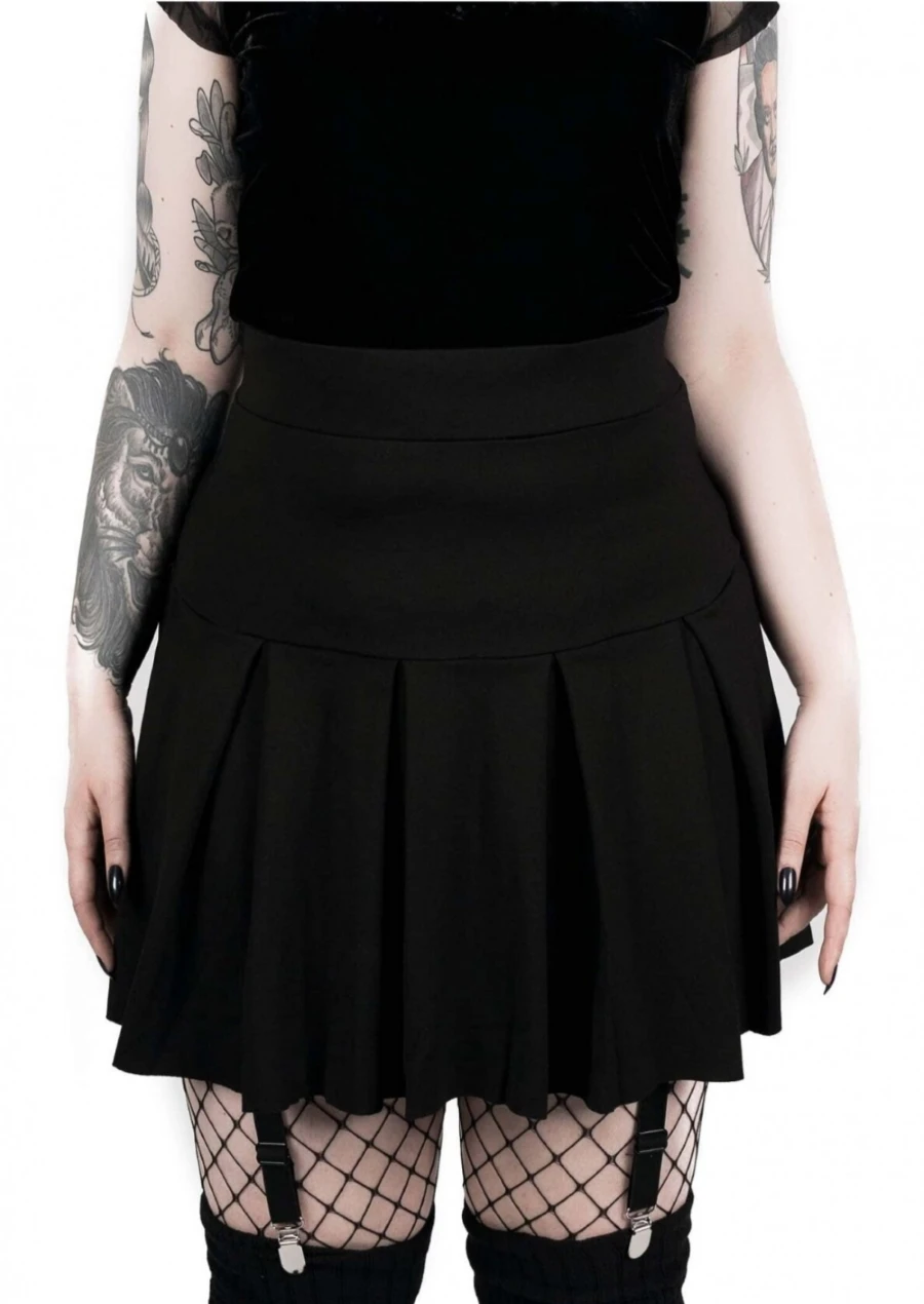 Sobre et élégante avec une vraie touche goth, la mini jupe ‘endora’ de chez Killstar remplie toutes les cases de la mode dark