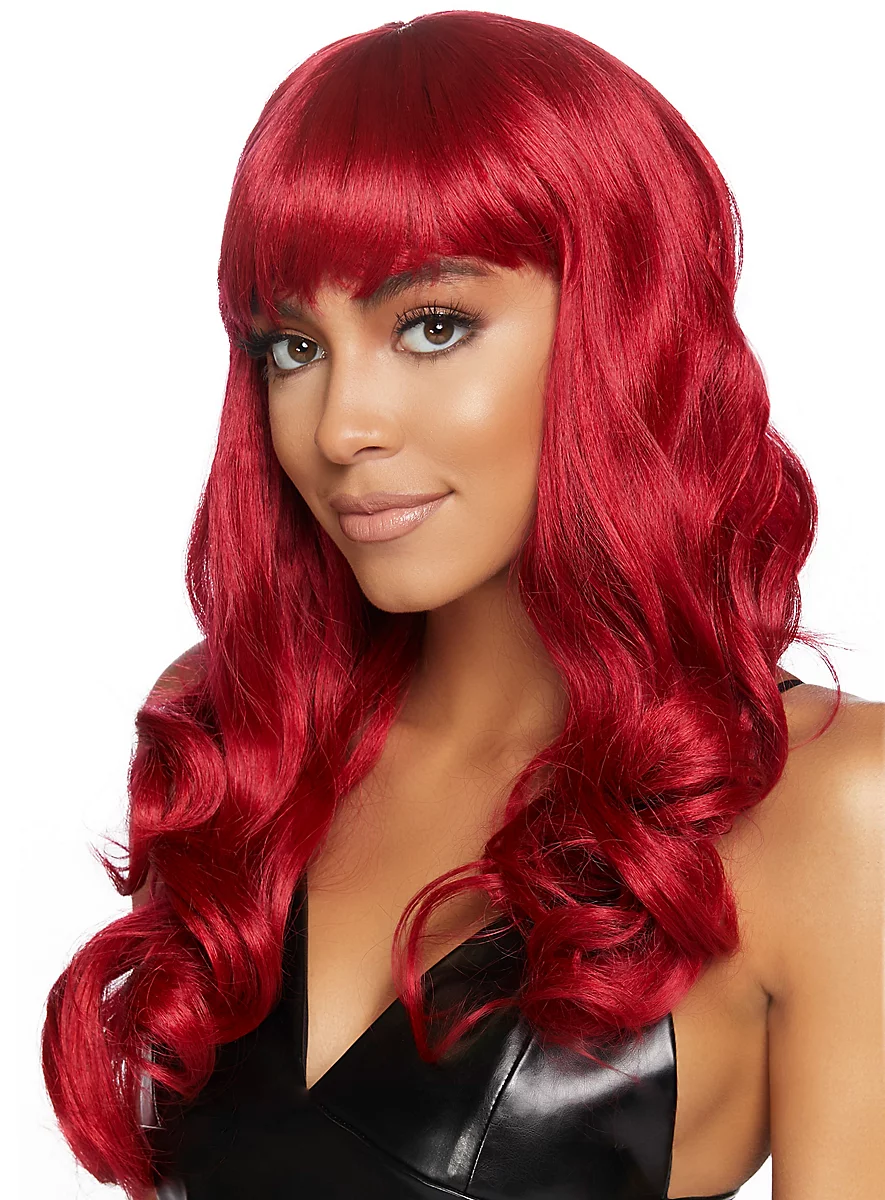 - Perruque rouge à cheveux longs avec frange en une pièce