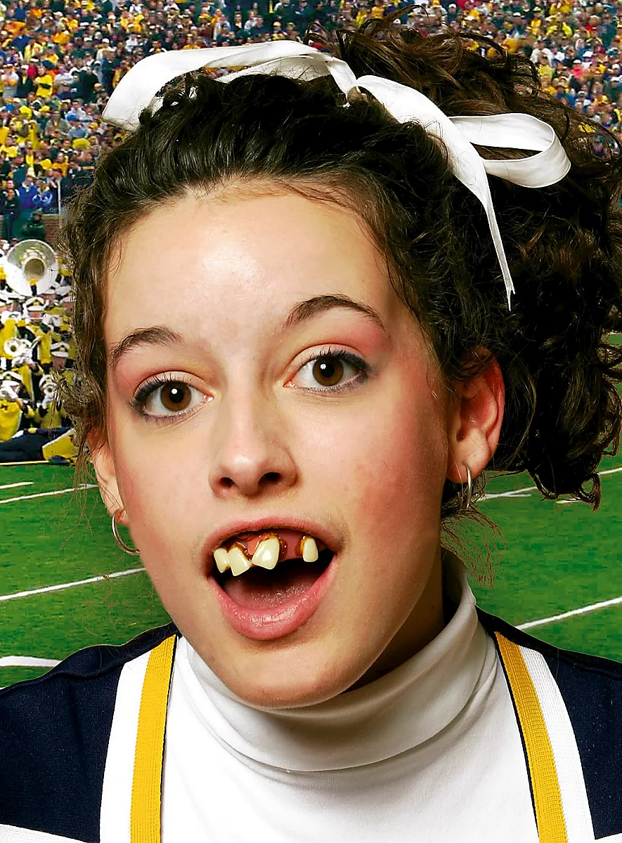 Les pom-pom girls impressionnent le public grâce à leur plastique, mais peu de monde prête attention à leurs dents. Au vu de leurs gencives enflammées, de la canine cassée et de l’implantation extrêmement tordue de leurs dents, il est peut-être préférable que personne ne s’y intéresse. La rangée de dents de pom-pom girl s’ajuste par ailleurs individuellement à l’aide des deux composants de moulage inclus. Danse ma jolie, danse !
