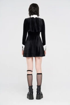 Inspirée de Mercredi Addams cette robe en luxueux velours noir est signée Punk Rave