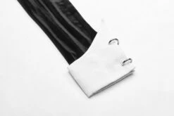 Les grands revers de manches sont également du même tissu blanc avec des anneaux métalliques amovibles
