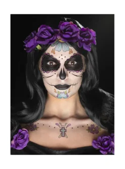 - Kit de maquillage Dia de los Muertos noir-violet en plusieurs pièces