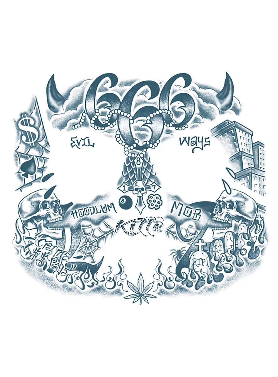 - Un kit de tatouage adhésif pour le visage Hoodlum