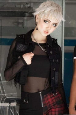 Terrible veste sans manches en jean taillée dans un tissu denim vintage de qualité par Killstar
