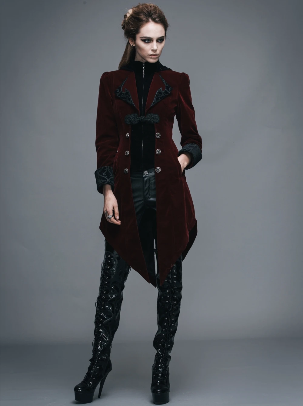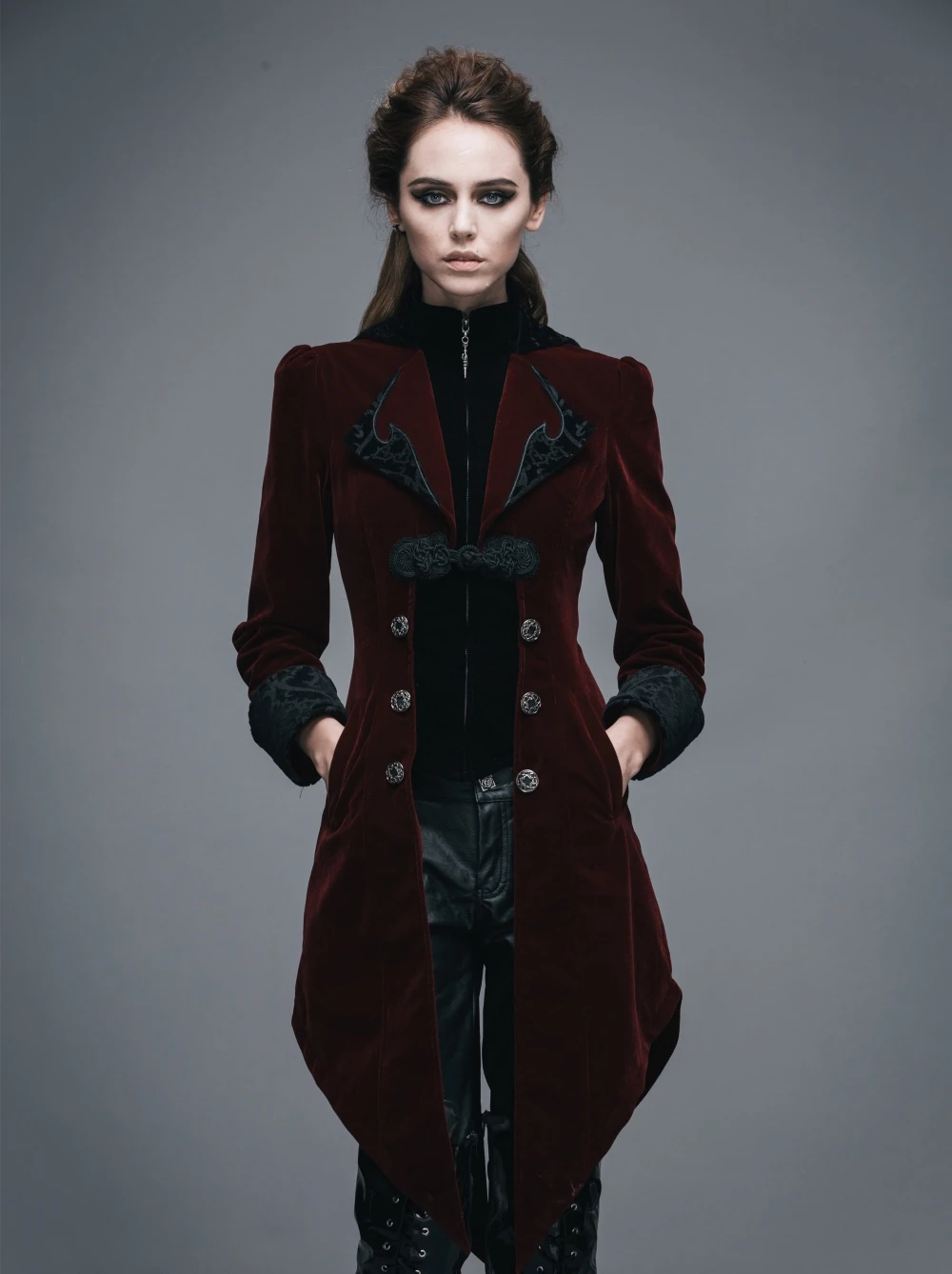 Veste gothique en velours bordeaux