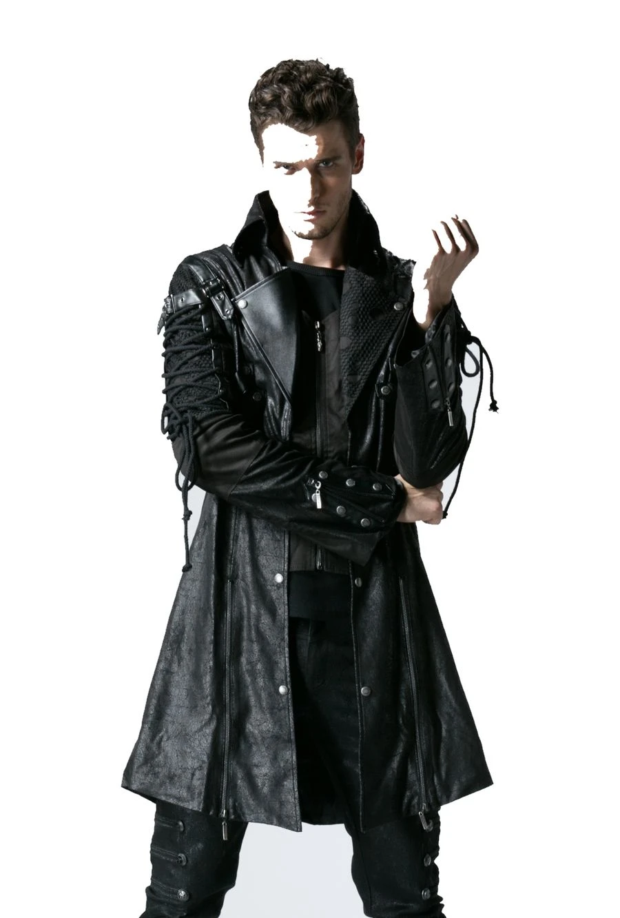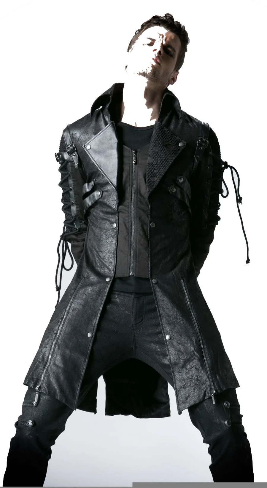 Veste dark goth en queue de pie en tissu effet cuir vieilli