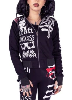 Sensationnelle veste noire à capuche pour femme par Heartless